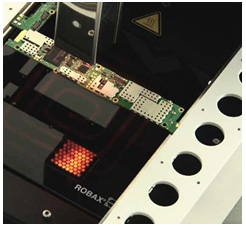 Depending on the assembly and the preselected power a typical soldering time for components can range from 60 to 180 s (1 -3 min). During wor- king breaks, the bottom heater switches back to standby level. The integrated PCB holder locates the assembly in optimum working distance to top and bottom heater.